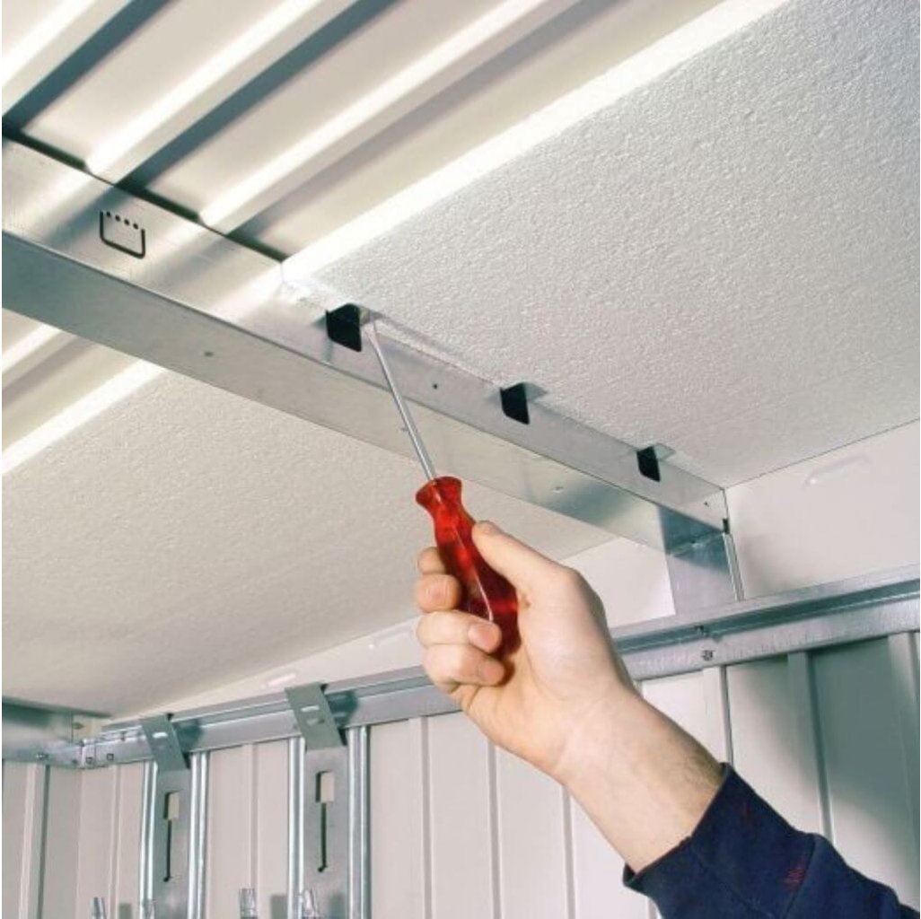 - 4 držáky zahradního náčiní (pro zavěšení lopat, hrábí, hadic apod.).