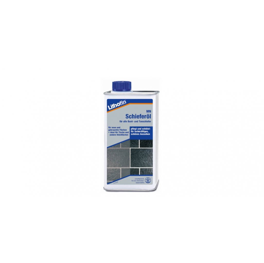 Lithofin SCHIEFERÖL se používá v interiéru. Jedná se o břidlicový olej, vhodný na ochranu a údržbu pestrých i hliněných břidlic. Zesiluje přirozenou barvu a strukturu povrchu, zlepšuje vzhled. Díky tomuto přípravku bude břidlice oživená a ochráněná. Přípravek má vodě odpudivý efekt. Vhodný pro pravidelnou péči. Břidlicový olej můžeme aplikovat na hrubé až jemně broušené břidlice. Nemusíte se obávat žádného omezení, je vhodný pro břidlice indického původu, afrického, italského i pro olejové druhy.