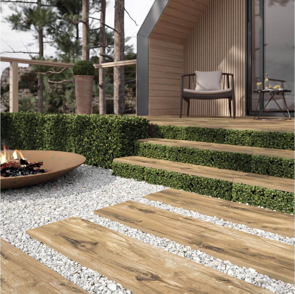 Keramické desky síly 2 cm je možné ukládat do jemného štěrkového lože bez nutnosti lepení či betonování. Snadnou pokládkou tak ihned získáte krásný protiskluzový povrch odolný proti nepříznivým povětrnostním podmínkám, mechu a plísním. Vedle výroby zajímavých dekorativních ploch je pokládka do štěrku vhodná na místa, kde je problém vytvořit drenáže vody v zemi nebo v betonových površích (terasy nebo balkóny).