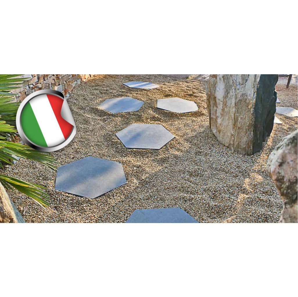 Hexagon jsou keramické nášlapy ve tvaru hexagonu, které spojují luxus a praktičnost. Díky svým užitečným vlastnostem, jako je protiskluzovost, mrazuvzdornost nebo vysoká odolnost, jsou ideální volbou k tvoření atraktivních zahradních chodníků. Esagono Basalto nabízíme v šedé barvě, která se hodí jak do moderních, tak do tradičních zahrad či parků.