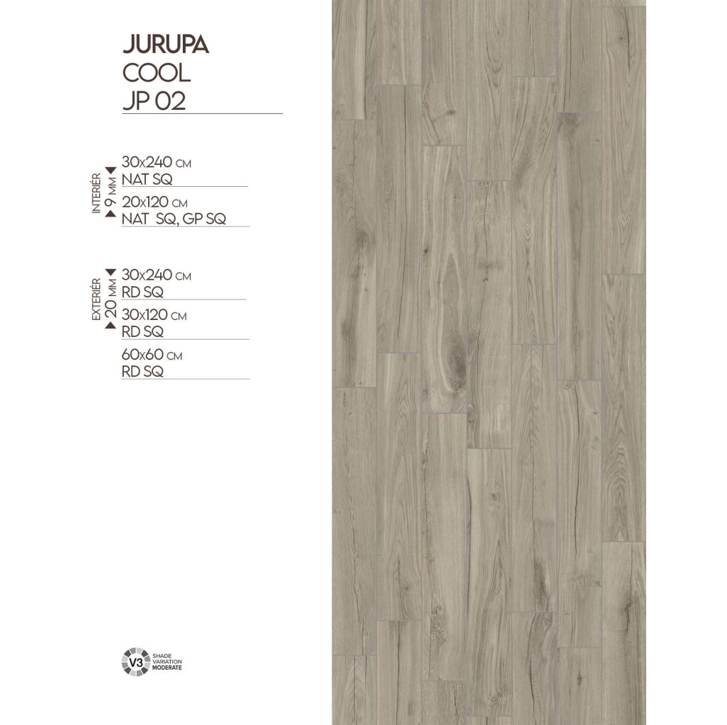 Jurupa JP 02 Cool přináší stylovou kombinaci šedého odstínu a jemné textury inspirované opracovaným dřevem. Tento typ dlažby a obkladu dokonale odráží moderní designové trendy a současně vytváří nadčasovou atmosféru. Dvě tloušťky – 0,9 cm a 2 cm – zajišťují všestranné využití v různých prostředích. Tenčí varianta 0,9 cm je skvělá pro interiérové aplikace, ať už jako dlažba či obklad, nebo jako obklad v exteriérech. Tloušťka 2 cm nabízí zvýšenou odolnost, která je perfektní pro venkovní dlažby, například na terasách či v okolí bazénů. JP 02 Cool je ideálním řešením pro ty, kdo hledají elegantní materiál, jenž harmonicky spojuje praktičnost s estetickým přínosem.