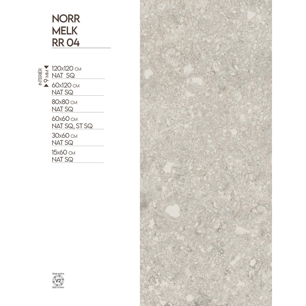 Norr RR 04 Melk je velkoformátová keramická dlažba s obkladem, který vyniká svou strukturou a jemnými pískovými a béžovými odstíny. Patří do kategorie V2, vyznačující se jemnou variací odstínů, která dodává povrchu přirozený a autentický dojem. Tento obklad a dlažba se uplatní v široké škále prostorů, od elegantních koupelen, stylových kuchyní až po moderní vstupní prostory. V exteriérech se osvědčí v pergolách, balkonech nebo kolem bazénů, kde její odolnost a snadnou údržbu oceníte po mnoho let. Dlažba je perfektní volbou pro ty, kdo hledají harmonii mezi funkčností a krásou.