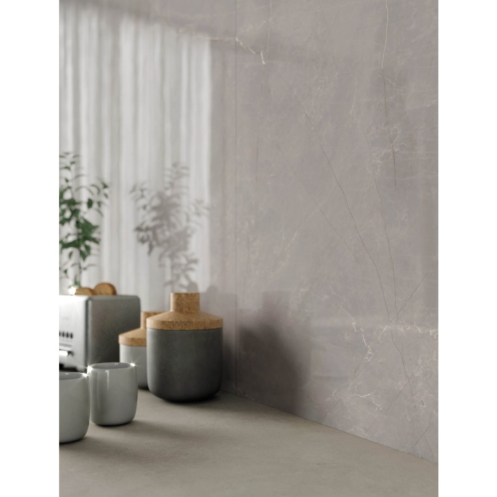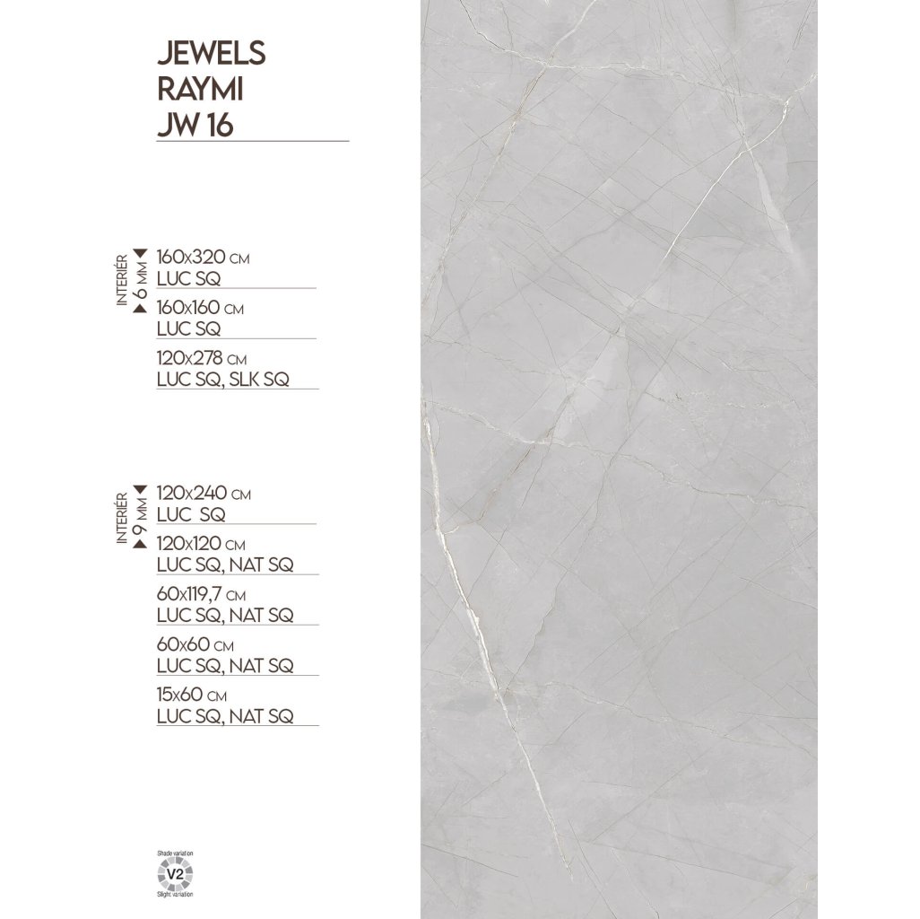 Jewels 2.0 JW 16 Ryami je luxusní keramická dlažba a obklad se světle šedým základem, zdobeným decentním žilkováním, které evokuje přirozenou kresbu mramoru. Lesklý povrch zdůrazňuje jeho sofistikovaný charakter a dodává prostoru exkluzivní atmosféru. Velkoformátové provedení navíc minimalizuje spáry, usnadňuje údržbu a přispívá k harmonickému dojmu celistvého povrchu. Tento typ je ideální pro soukromé projekty, jako jsou obývací pokoje, koupelny či kuchyně, kde zvýrazní eleganci a vkus. V komerčním sektoru se skvěle uplatní například v hotelových lobby, stylových restauracích nebo prestižních kancelářských prostorách, kde podtrhne reprezentativní charakter interiéru.