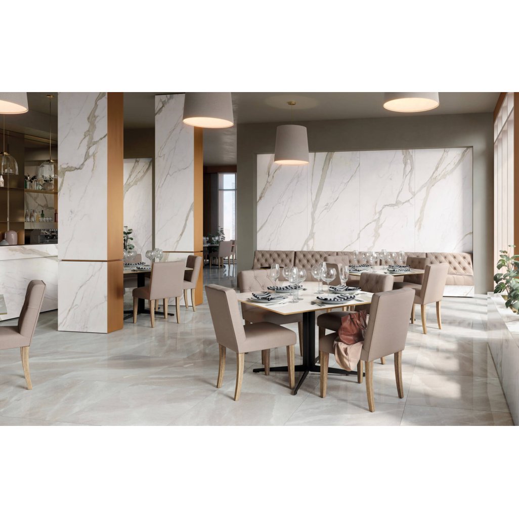Velkoformátová keramická dlažba a obklad Jewels 2.0 JL 02 Calacatta Select od Mirage je dokonalým spojením elegance a odolnosti. Jemné šedé žilkování s většími hrubšími žílami a lesklý povrch dodají vašemu interiéru nádech luxusu a vytvoří dojem prostornosti. Díky své vysoké kvalitě a odolnosti je vhodná jak do soukromých, tak komerčních prostor. Jednotlivé dlaždice jsou navrženy tak, aby na sebe dokonale navazovaly a vytvářely souvislý, harmonický povrch. Ať už ji použijete v koupelně, kuchyni, obývacím pokoji, hotelovém lobby nebo třeba v luxusním obchodě, vytvoříte si tak prostor, který bude vyzařovat exkluzivitu a styl.