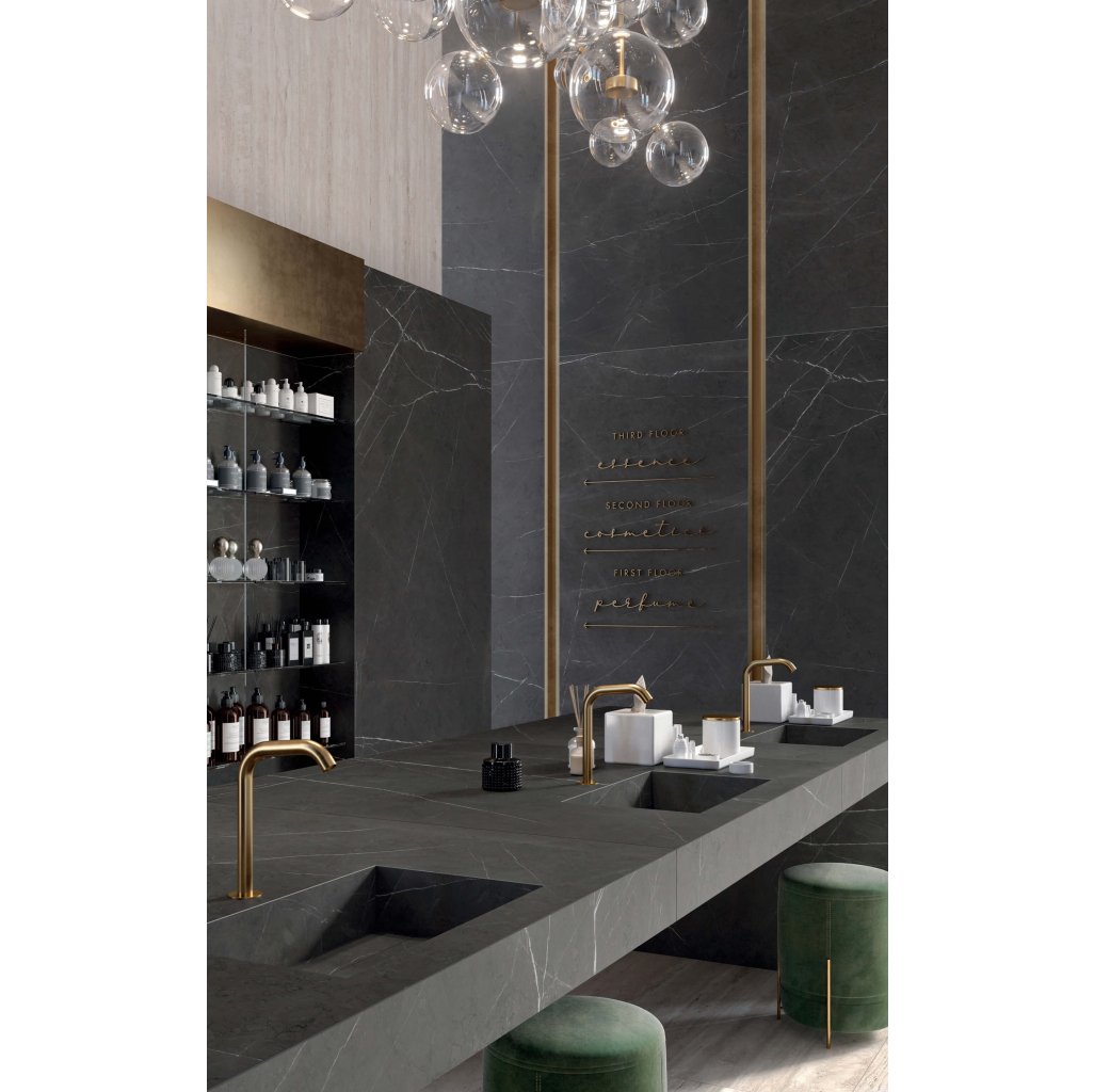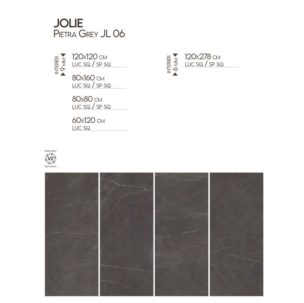 JL 06 Pietra Grey přináší dramatický vzhled inspirovaný elegantním mramorem s tmavě šedým podkladem a jemnými světlými žilkami, které přirozeně zdůrazňují jeho sofistikovaný charakter. Tento dekor je vytvořen tak, aby na jednotlivých dlaždicích navazoval, což přispívá k dojmu přírodního materiálu. Díky lesklému povrchu a velkému formátu dlaždice vytvářejí vizuálně sjednocený prostor s minimem rušivých spár. Tento typ je skvělou volbou pro soukromé prostory, jako jsou koupelny, kuchyně nebo obývací pokoje, kde přidává na prestiži a vytříbenosti. V komerčním prostředí, například v recepcích, hotelových halách nebo stylových kancelářích, podtrhuje JL 06 Pietra Grey dojem moderního luxusu a rafinovanosti.