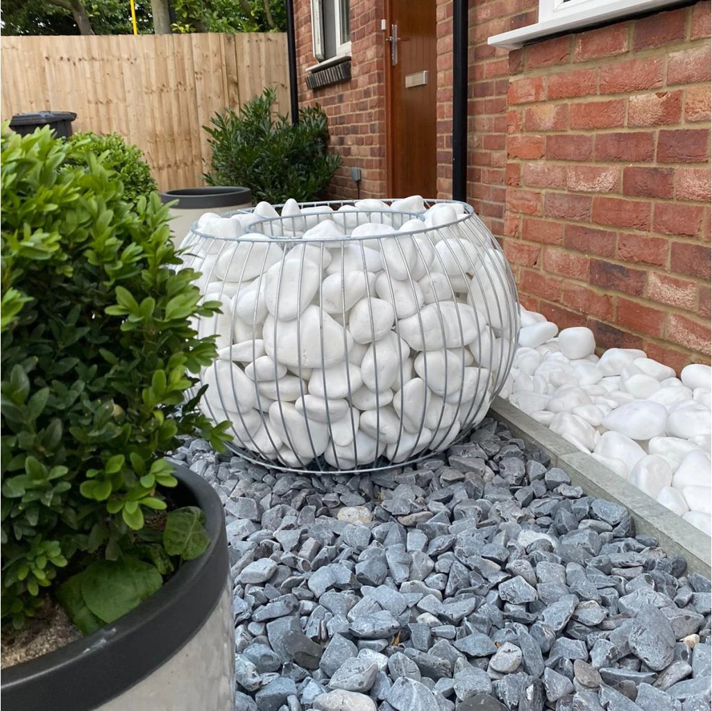 K bílým valounkům se hodí přírodní dekorace, různé květiny a rostliny, fontány, ale také kamenné sošky, pítka, květináče nebo si můžete vybrat rovnou některý ze solitérů.