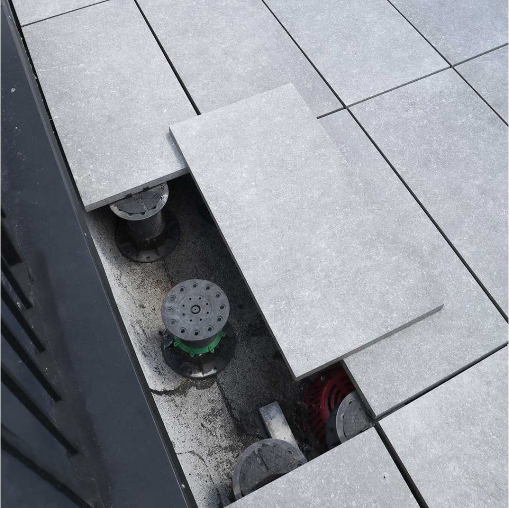 Keramickou dlažbu Seviano lze pokládat na konstrukci terčů, která se skládá z nosných polypropylenových podpěr. Podpěry jsou dokonale nastavitelné a umožňují realizaci zvýšených podlah na takřka libovolném podkladu. Tento způsob pokládky je velmi snadný a navíc umožňuje ukrytí elektrických a vodovodních systémů do dutiny pod dlažbou.